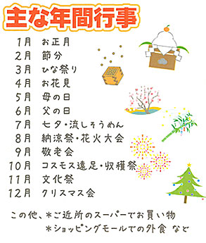 ・日々のレクリエーションや季節ごとの行事等を行います。
