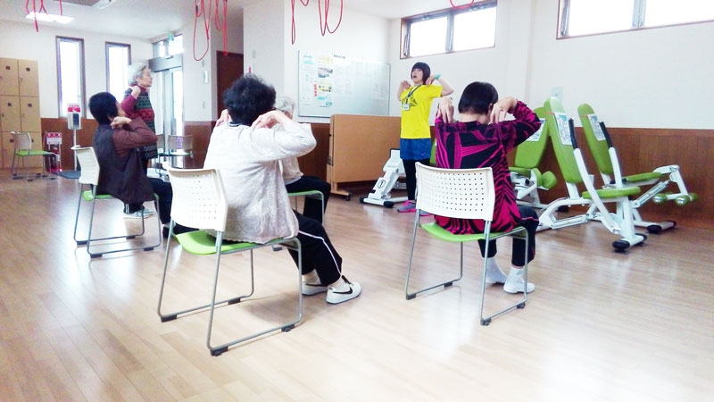 「デイトレセンター石井」は、約3時間程度の運動・機能訓練型デイサービスです。 ご利用者の皆様には、グループエクササイズ(集団運動)、個別エクササイズ(個別運動)、 生活リハビリ等、健康維持向上・機能維持向上に必要なプログラムに参加頂きます。